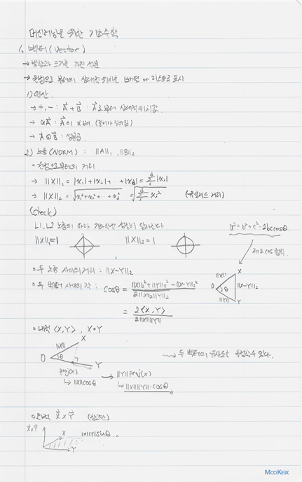 [AI Tech Pre-course] 인공지능(AI) 기초 다지기 퀴즈를 풀어보고 강좌를 수강하며 수학 기본 개념 정리를 시작하였다.